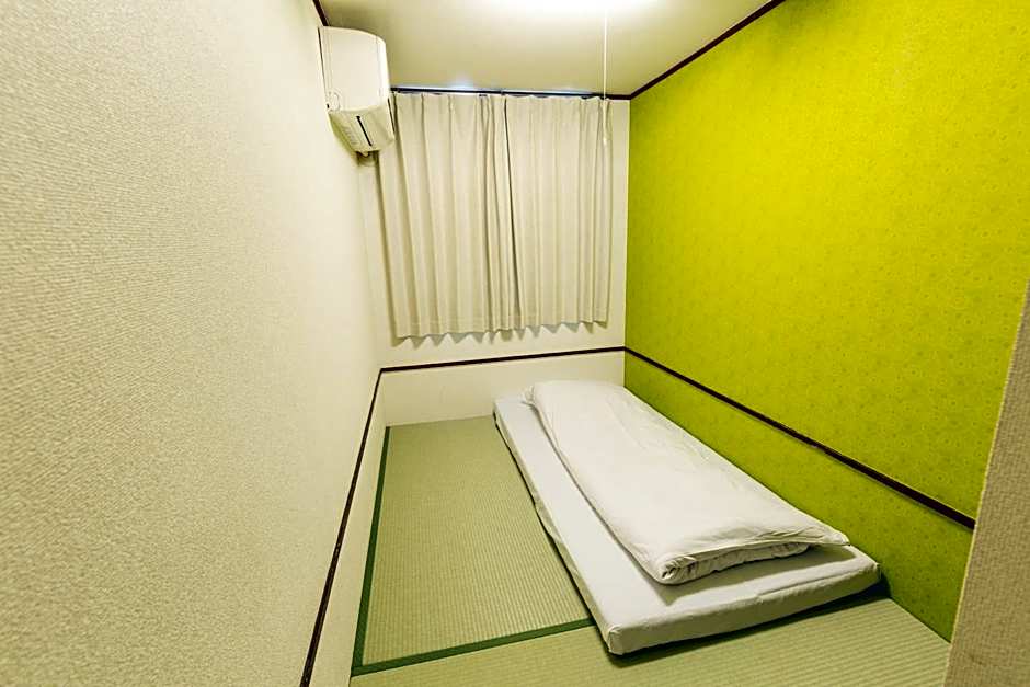 Basic room without air-conditioning/heating facilities. Features tatami (woven-straw) flooring and Japanese futon bedding, while bathrooms and toilets are shared. A hot water bottle is provided during the winter season, and a fan is provided during the summer. Please note that the rooms have thin walls, so voices and sounds carry.